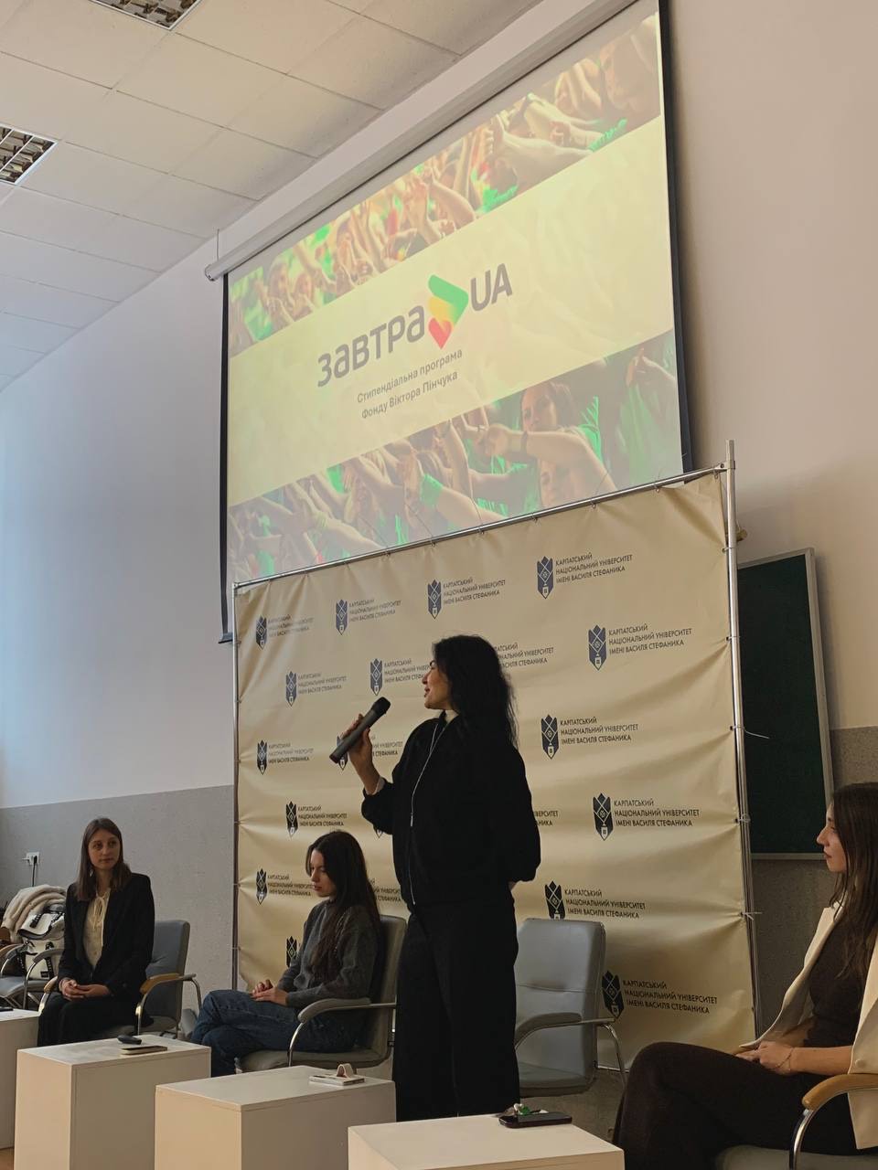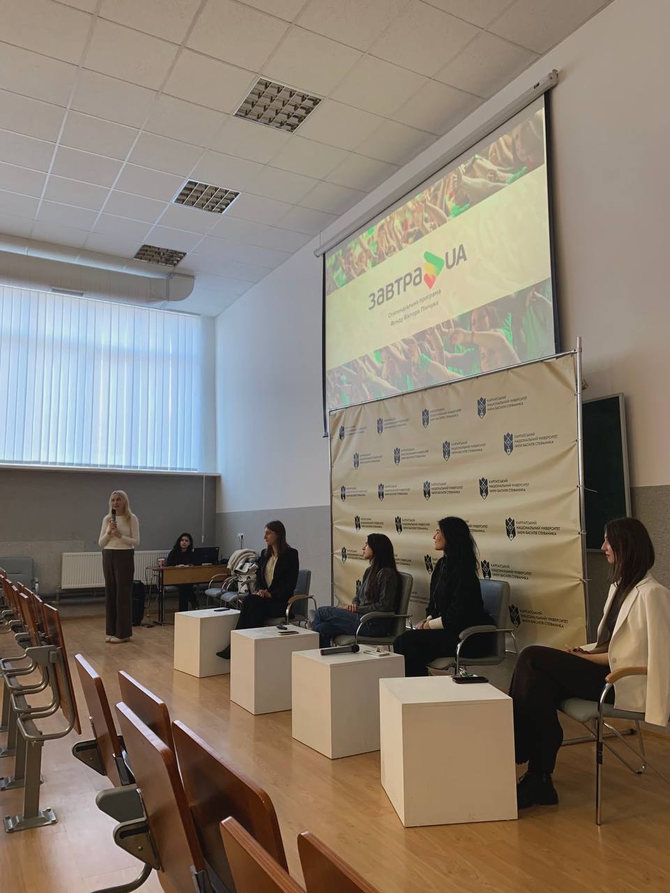 Представниці програми детально й доступно пояснили, як саме відбувається вступ до “Завтра.UA”: які існують етапи, за якими критеріями відбирають учасників та на що звертають увагу під час розгляду заявок. Вони також розповіли про широкі можливості програми – участь у соціальних та освітніх проєктах, розвиток власних ініціатив, командну роботу та підтримку молодих лідерів по всій Україні. Також, спікерки приділили тому, як підготувати заявку та яку підтримку отримують студенти, які стають частиною спільноти стипендіатів.