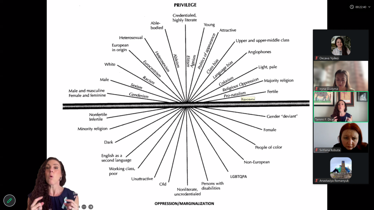 Захід розпочала декан факультету психології КНУВС, докторка психологічних наук, професорка Лариса Заграй, яка представила гостю та наголосила, що ця лекція стала важливим кроком до започаткування співпраці між факультетом психології, центрами «Разом з тобою» та Університетом Олд Домініон (США). У вітальному слові було підкреслено, що д-р Таммі Дайс є визнаною лідеркою у сфері освіти, соціальної справедливості, інклюзії та рівності, а також активно підтримує українську спільноту в умовах війни.