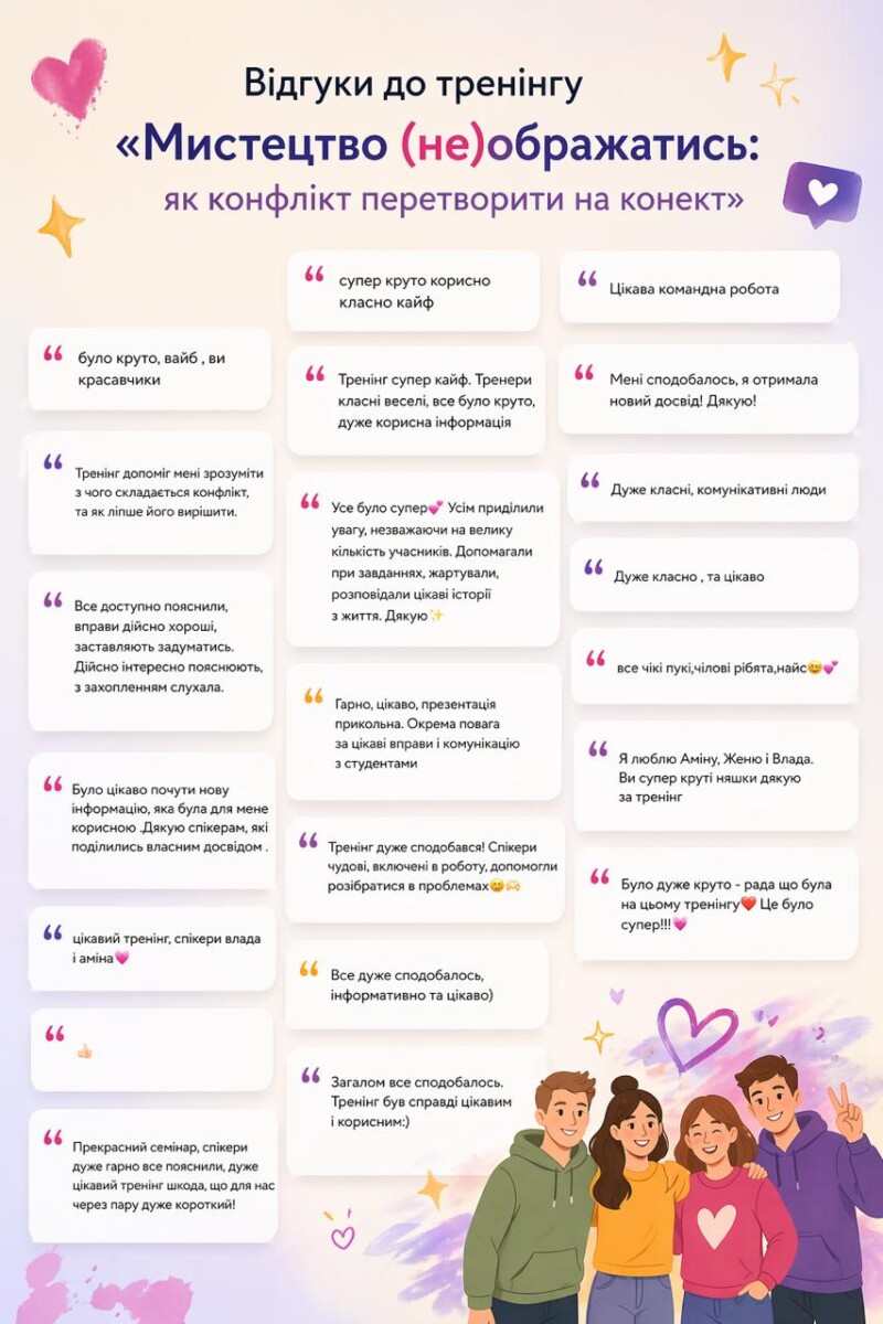 Загалом тренінг пройшов у дружній та відкритій атмосфері, викликав жвавий інтерес і активну участь студентів, що свідчить про актуальність теми та її практичну цінність для майбутніх фахівців у сфері психології.